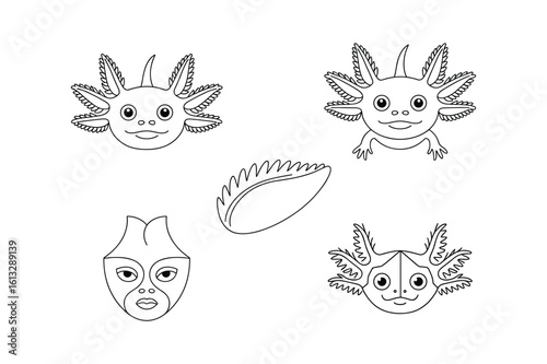 Fototapeta premium Cute axolotl faces and a mask amphibian creature