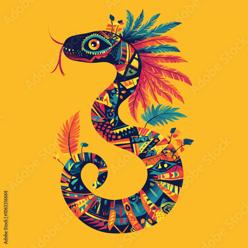 Fototapeta premium Cute Aztec Feathered Serpent with Vibrant Intricate