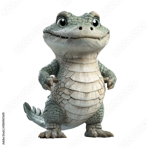 © missisya, Obraz premium Cute Baby Alligator Cartoon Character 3D Render on transparent background