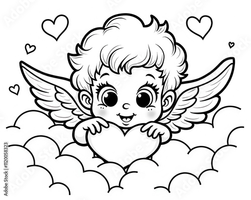 © dragon_fang, Fototapeta premium Cute Baby Angel Peeking Through Fluffy Clouds