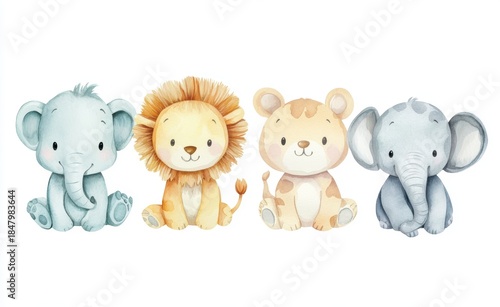 © Tanish, Naklejka premium Cute Baby Animal Faces Watercolor Illustration Set