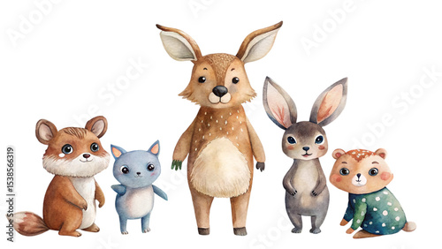 Fototapeta premium Cute Baby Animals Group – Tiger, Cat, Mouse Illustration Transparent Background