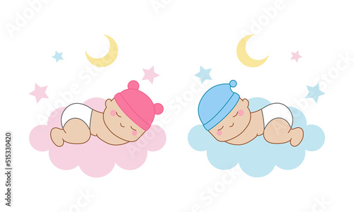 © cloverlittleworld, Fototapeta premium Cute baby boy and girl sleeping. Flat vector cartoon design