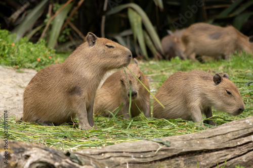 © Joshua Daniels, Fototapeta premium Cute Baby Capybara Chewing On Grass
