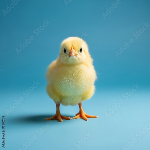 © Samaran, Fototapeta premium Cute Baby Chick on Blue Background.
