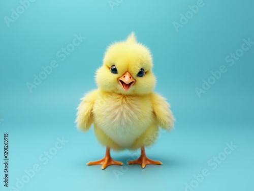 © Cozy Coffee Bar, Fototapeta premium Cute baby chick smiling on turquoise background