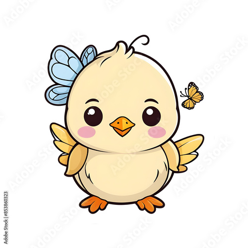 Obraz premium Cute Baby Chick with Butterfly, kawaii style