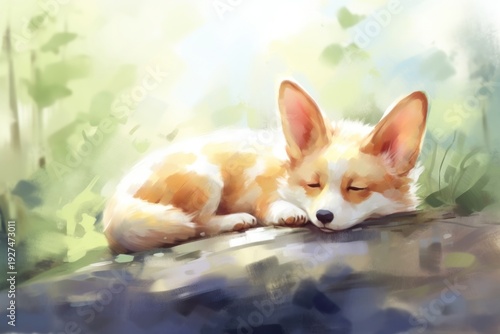 Naklejka premium Cute baby corgi outdoors animal mammal.