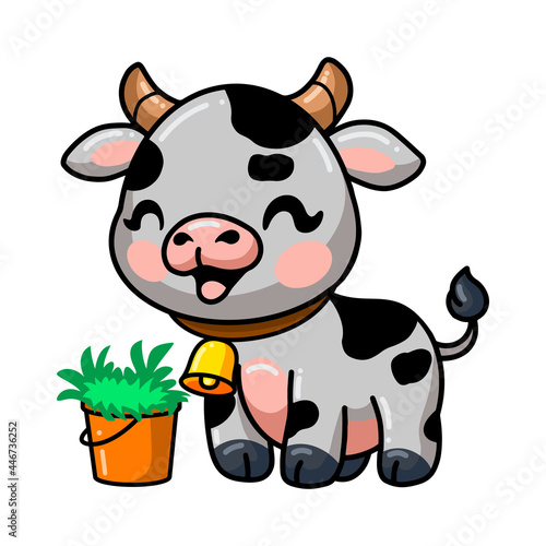 Obraz premium Cute baby cow cartoon with bucket