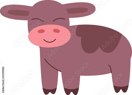 © Mykola Syvak, Naklejka premium Cute baby cow flat icon Funny cartoon animal
