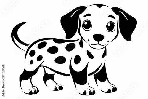 © Pinak, Fototapeta premium cute baby dalmatian dog line art silhouette vector illustration