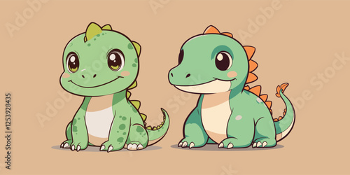 © Elementix, Obraz premium Cute Baby Dragons Cartoon Vector Icon Illustration stickers