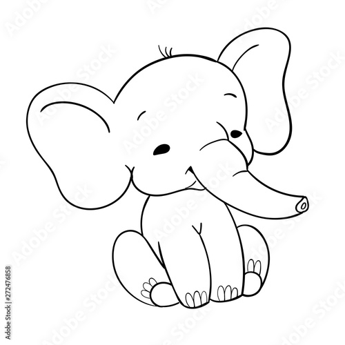 Obraz premium Cute baby elefant sitting. Funny black and white elefant for design