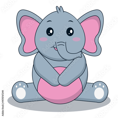 © Denu, Fototapeta premium Cute Baby Elephant Cartoon Character. Isolated on White Background.