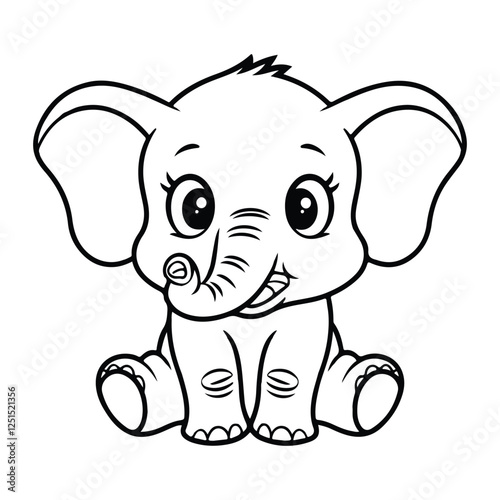 © Bithi, Obraz premium Cute baby elephant cartoon outline illustration.