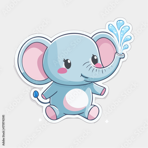 Obraz premium Cute Baby Elephant Cartoon Sticker Spraying Water