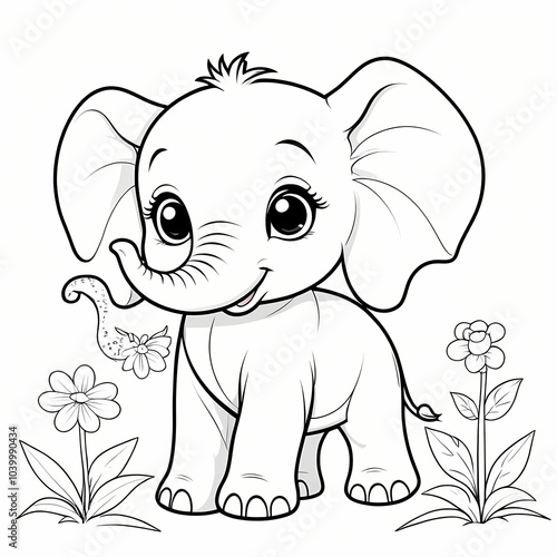 © Michel, Fototapeta premium Cute Baby Elephant Coloring Book Page