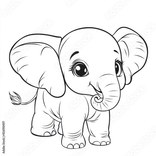 Fototapeta premium Cute Baby Elephant Coloring Page isolated white background
