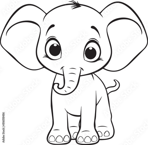 Fototapeta premium Cute Baby Elephant for Coloring Book, Black and White Cartoon Illustration