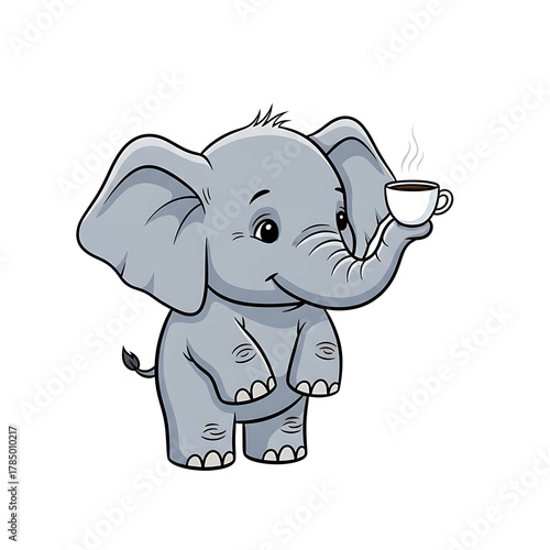 © PNG River , Fototapeta premium Cute baby elephant holding a steaming cup of coffee isolated on transparent background