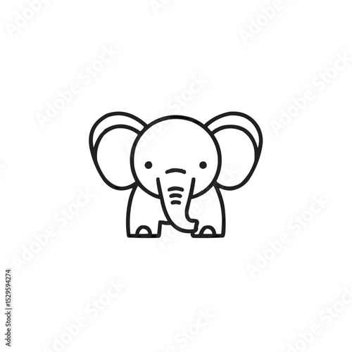 © Margarita, Fototapeta premium : Cute baby elephant icon in black line style