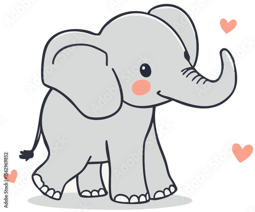 © speedcat, Naklejka premium Cute baby elephant sitting, adorable animal character. Cartoon vector illustration isolated on white background.
