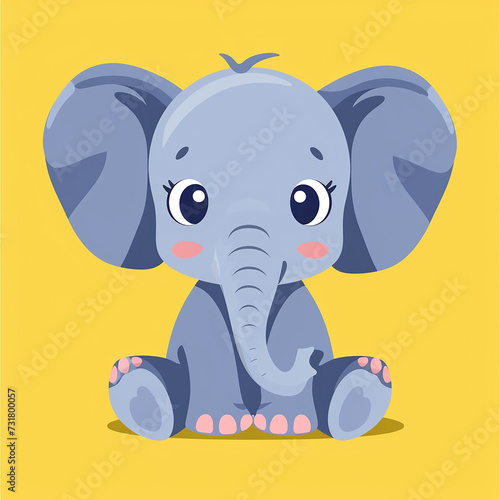 © Valentin, Obraz premium Cute Baby elephant, sitting and looking to camera , vector illustration
