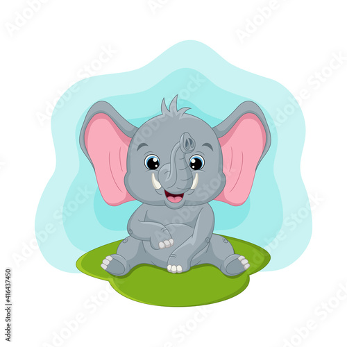 © Mimosastudio, Obraz premium Cute baby elephant sitting in the grass