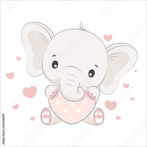 © Arina, Fototapeta premium Cute baby elephant with a heart. Cartoon vector illustration.