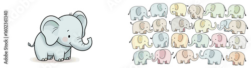 © Ankit, Fototapeta premium Cute baby elephants cartoon illustration. Adorable animal, childish, illustration, whimsical, nursery art, pastel colors, pattern