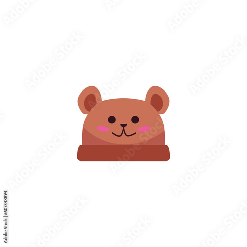Obraz premium Cute baby hat with bear ears and face, cartoon flat vector illustration...