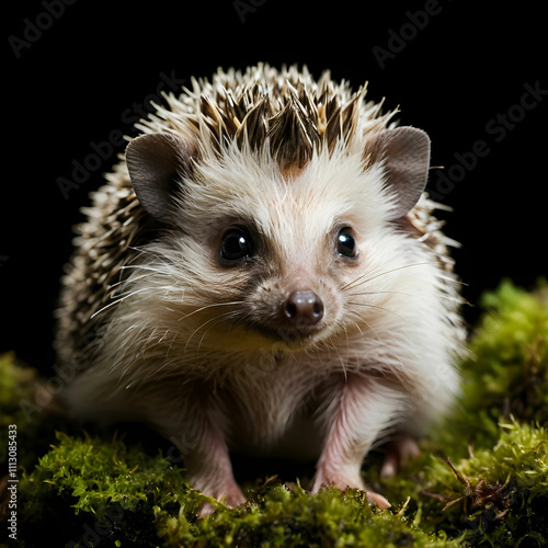 © Hanan, Naklejka premium Cute baby hedgehog closeup on moss