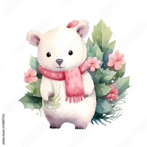 © Janie, Obraz premium cute baby ice bear and his cactus watercolor illustration