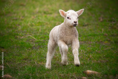 © Zita Stankova, Fototapeta premium Cute baby lamb running on the green spring field