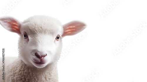 © Gouri, Fototapeta premium Cute baby lamb sitting in portrait, isolated on a white canvas