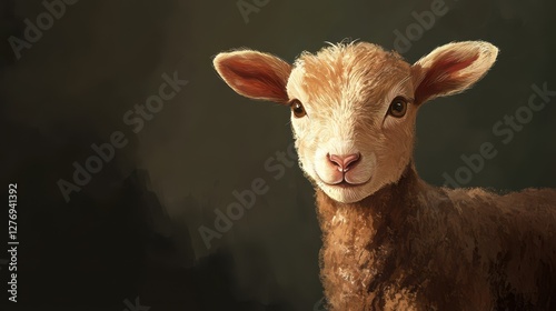 © Fortune228, Fototapeta premium Cute baby lamb with fluffy wool and soft ears against a dark background