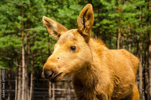 © polina_petrenko, Fototapeta premium Cute baby moose in the forest.