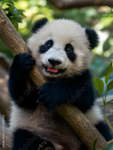 © Selen, Fototapeta premium Cute baby panda holding a branch