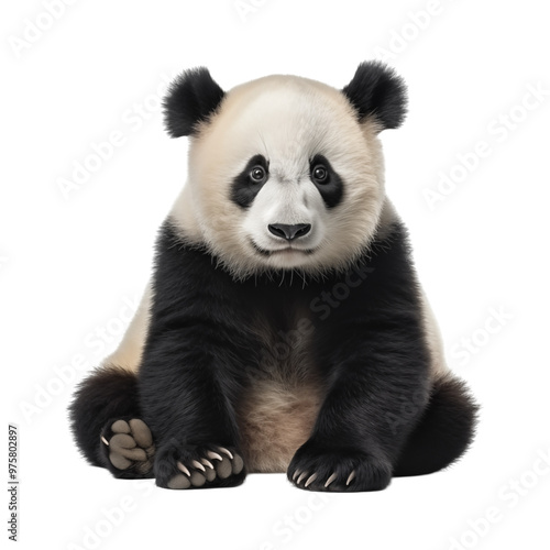 Obraz premium Cute Baby Panda Sitting Down And Looking Forward Isolated On A Transparent...