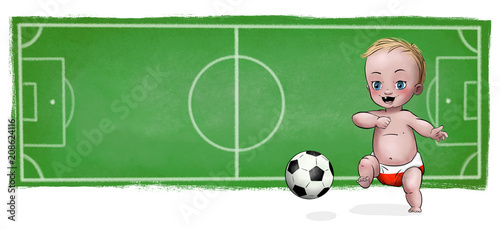 © patila, Fototapeta premium Cute Baby playing football - -Poland
