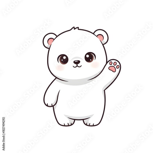 Fototapeta premium Cute baby polar bear waving with smooth rounded shapes and premium kawai style cut kawai images jpg