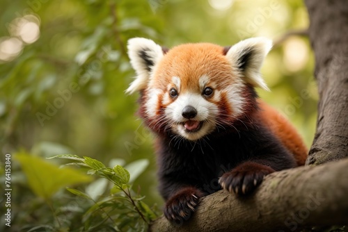 © juanpablo, Fototapeta premium cute baby red panda very happy and playful in the trees
