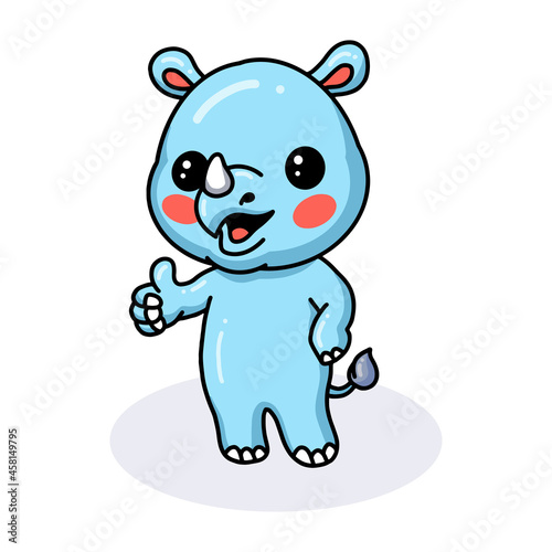 © frescostudio, Naklejka premium Cute baby rhino cartoon giving thumb up