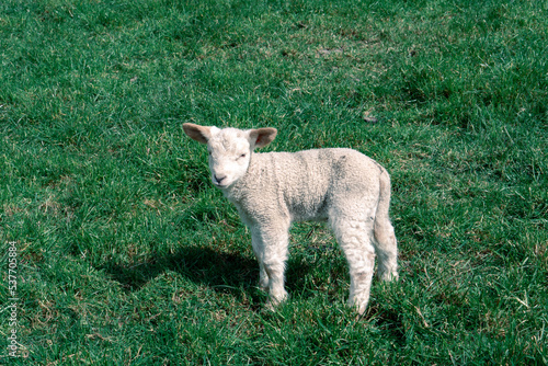 Obraz premium Cute baby sheep at Walter Peak, Queenstown