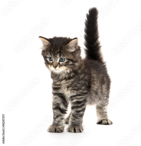 Fototapeta premium Cute baby tabby kitten on white