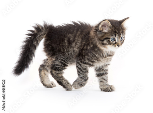 Fototapeta premium Cute baby tabby kitten on white