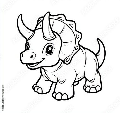 © Ruiqi, Fototapeta premium Cute baby Triceratops dinosaur coloring page, simple cartoon vector line drawing with thick black outlines, minimal kids illustration on white background.