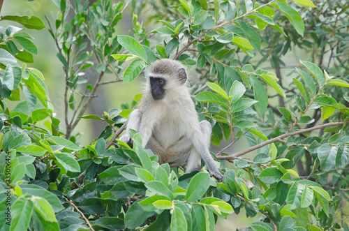 Fototapeta premium Cute baby vervet monkey in tree, northern Namibia, Africa