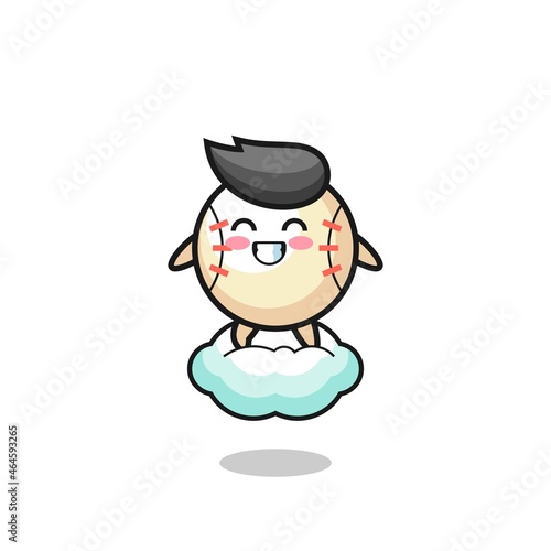 Fototapeta premium cute baseball illustration riding a floating cloud