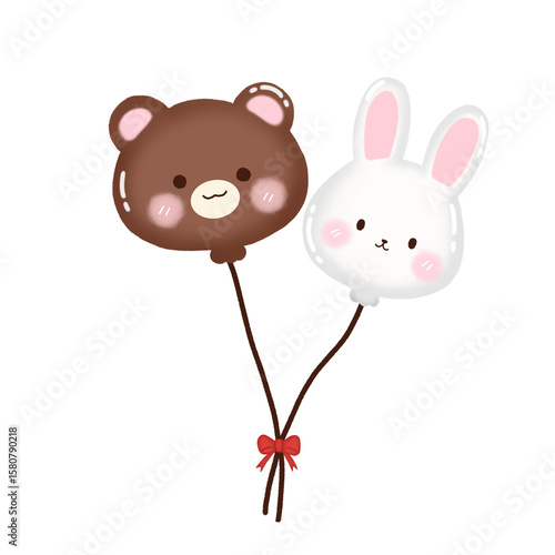 © Rujira, Fototapeta premium Cute bear and bunny balloon.